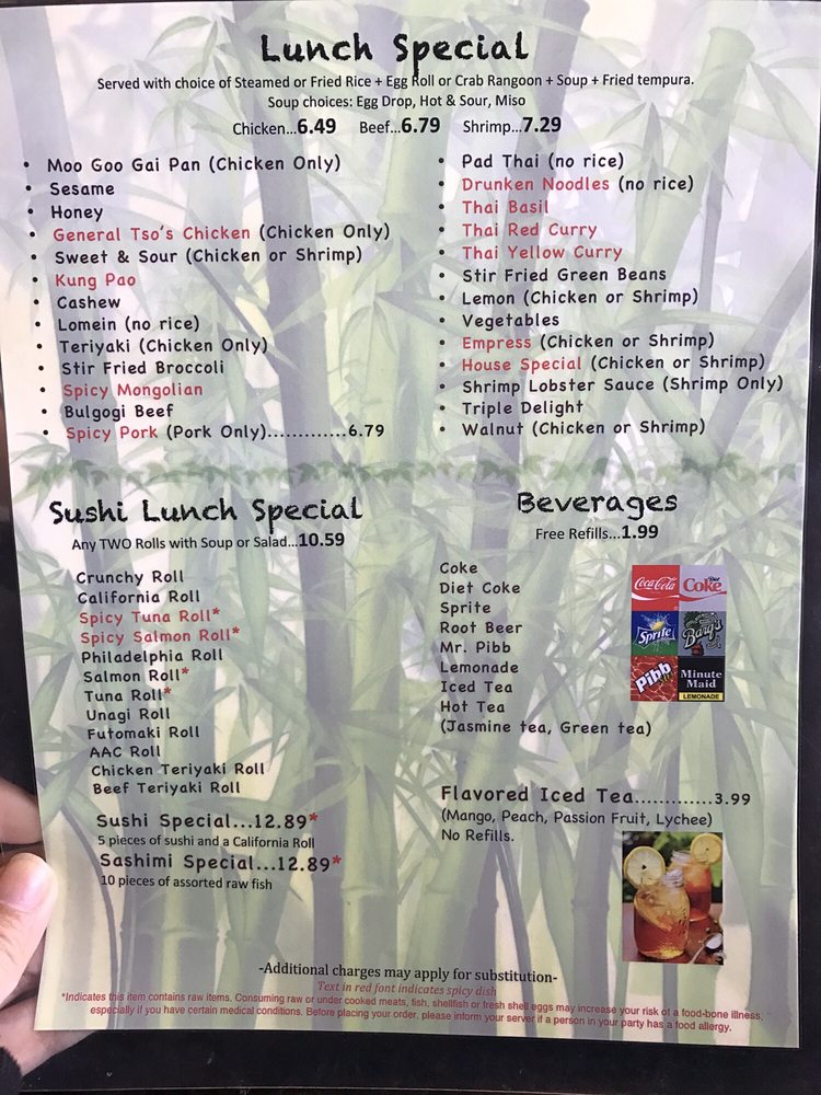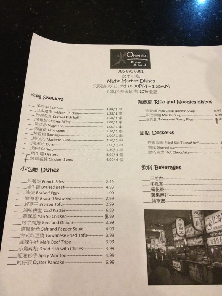 Introducing the menu at Oriental Bistro, a casual yet classy restaurant in Lawrence, Kansas. This Asian-owned establishment offers a range of authentic Chinese dishes such as Taiwanese Popcorn Chicken, Crispy Garlic Pork, and Chili Oil Fish. They also serve refreshing Asian drinks like Milk Tea and Chilsung Cider. Don't miss out on their Summer Specials like Mala Edamame and Firecracker Roll. Customers rave about the great food, lovely interior, and excellent service. Whether you're a fan of Chinese, Japanese, Thai, or other Asian cuisines, Oriental Bistro has something for everyone. Experience a variety of flavors and dishes from different regions of Asia, all in one place. Don't forget to try their bento boxes and yellowtail sashimi for a truly satisfying dining experience. With easy parking, impeccable service, and a diverse menu, Oriental Bistro is a must-visit for Asian food enthusiasts.